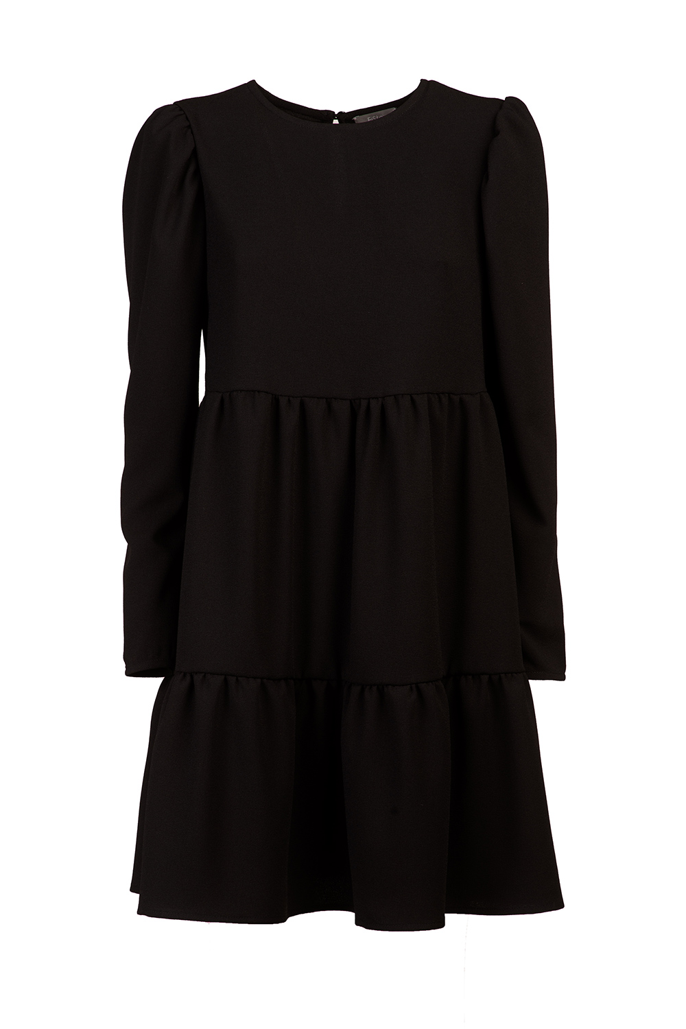 Vestito girocollo, manica lunga con sbuffo leggero.