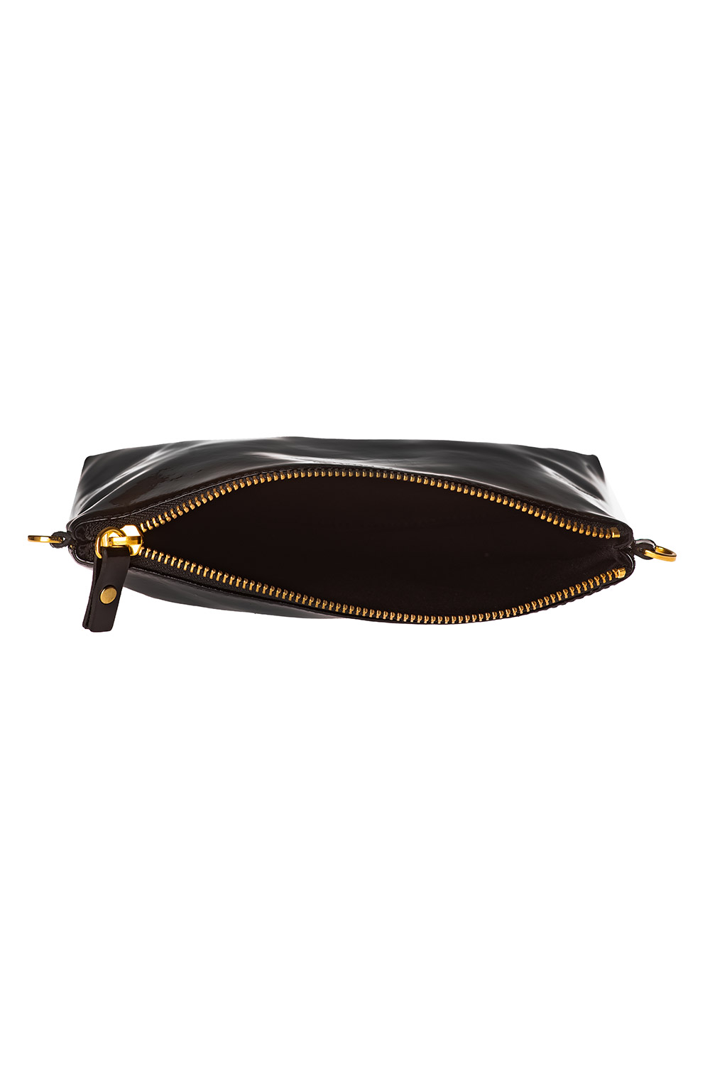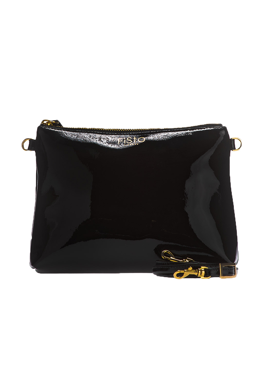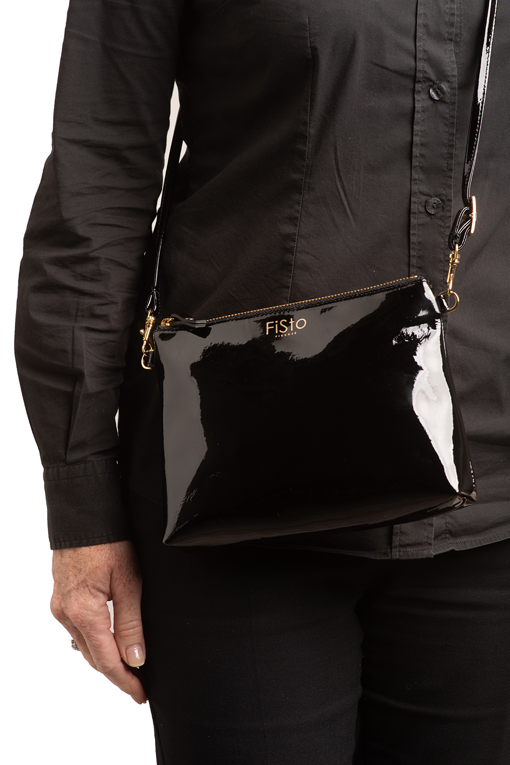 Borsa in pelle pelle vernice con tracolla regolabile.